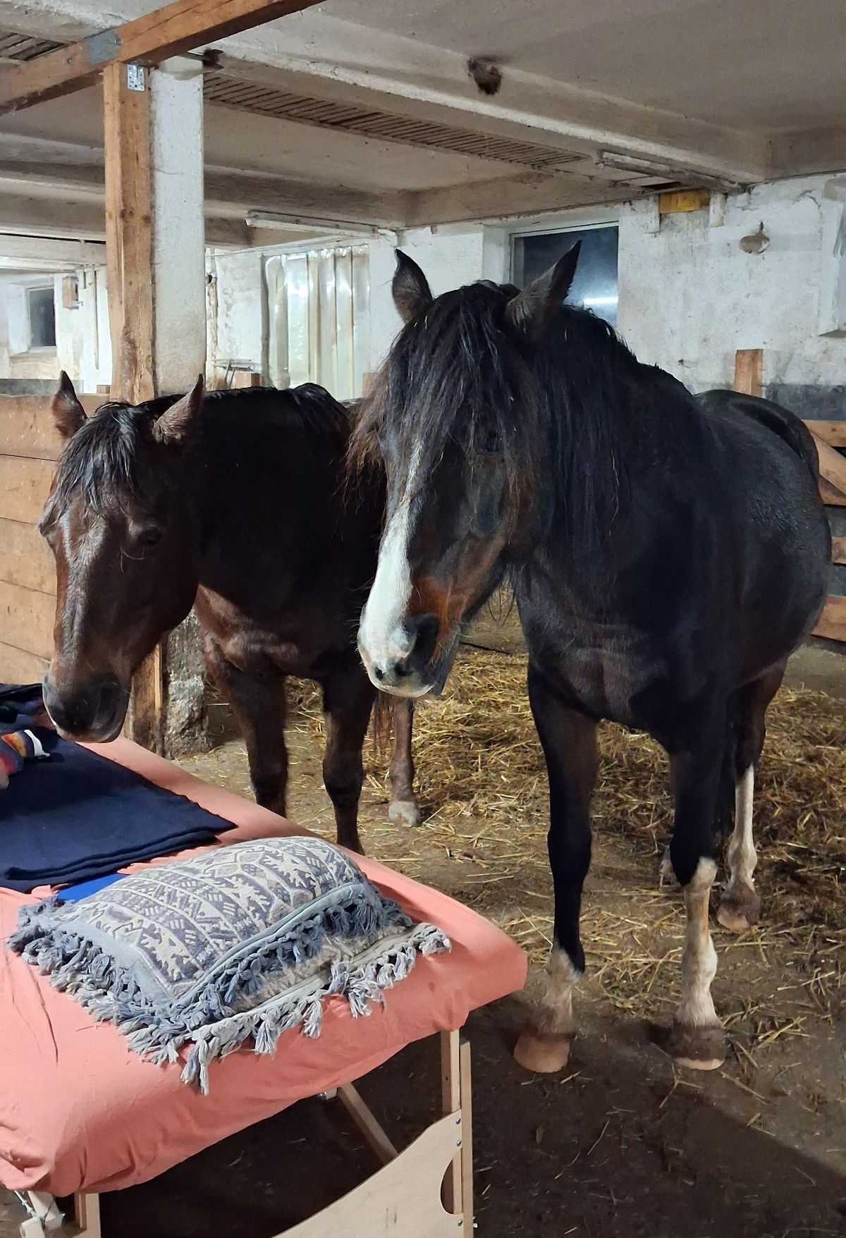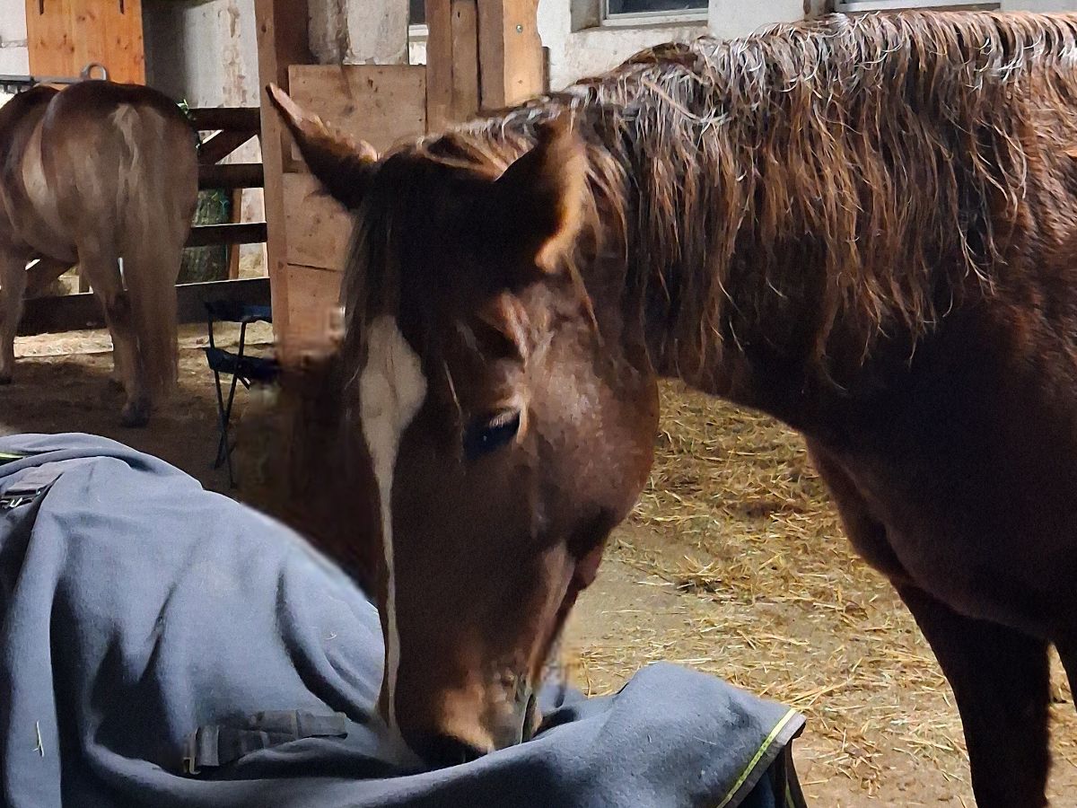 In meinem Fall war es die Präsenz einer Stute, die nicht von meiner rechten Körperseite wich. Sie stand geduldig und klar – zuerst bei meinen Füßen, später am Kopf. Und eben auf der Seite, die Schmerzen hat!