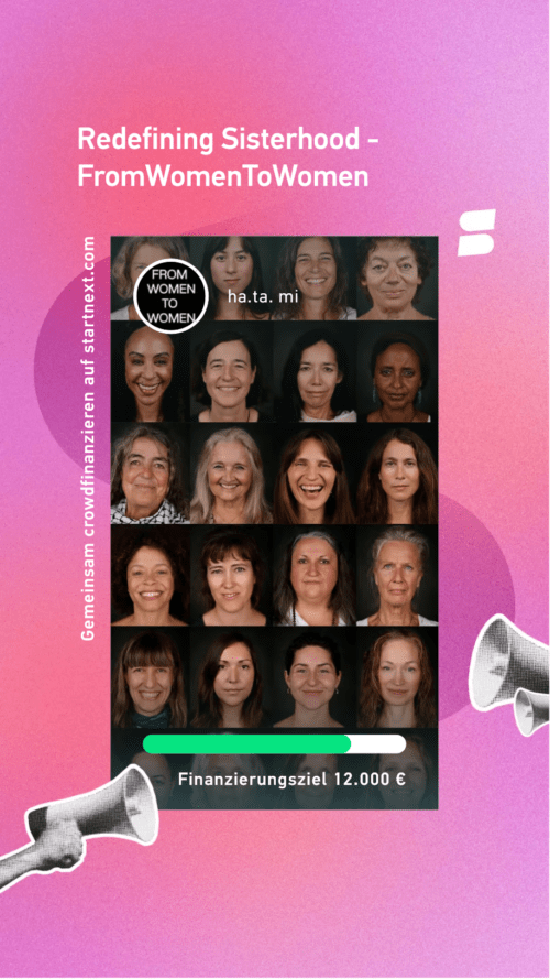 Der Aufruf auf Startnext war ein voller Erfolg! Am 8. März 2026 ist Premiere für den Film FROM WOMEN TO WOMEN: Redefining Sisterhood. Für weitere Zuwendungen ist die Filmemacherin HANNA MILLING offen, denn zum Crowfunding-Projekt gehören nicht nur der Film, sondern auch Veranstaltungen, Projekte, Dialoge und vertiefende Extras, die die Aktion begleiten können.